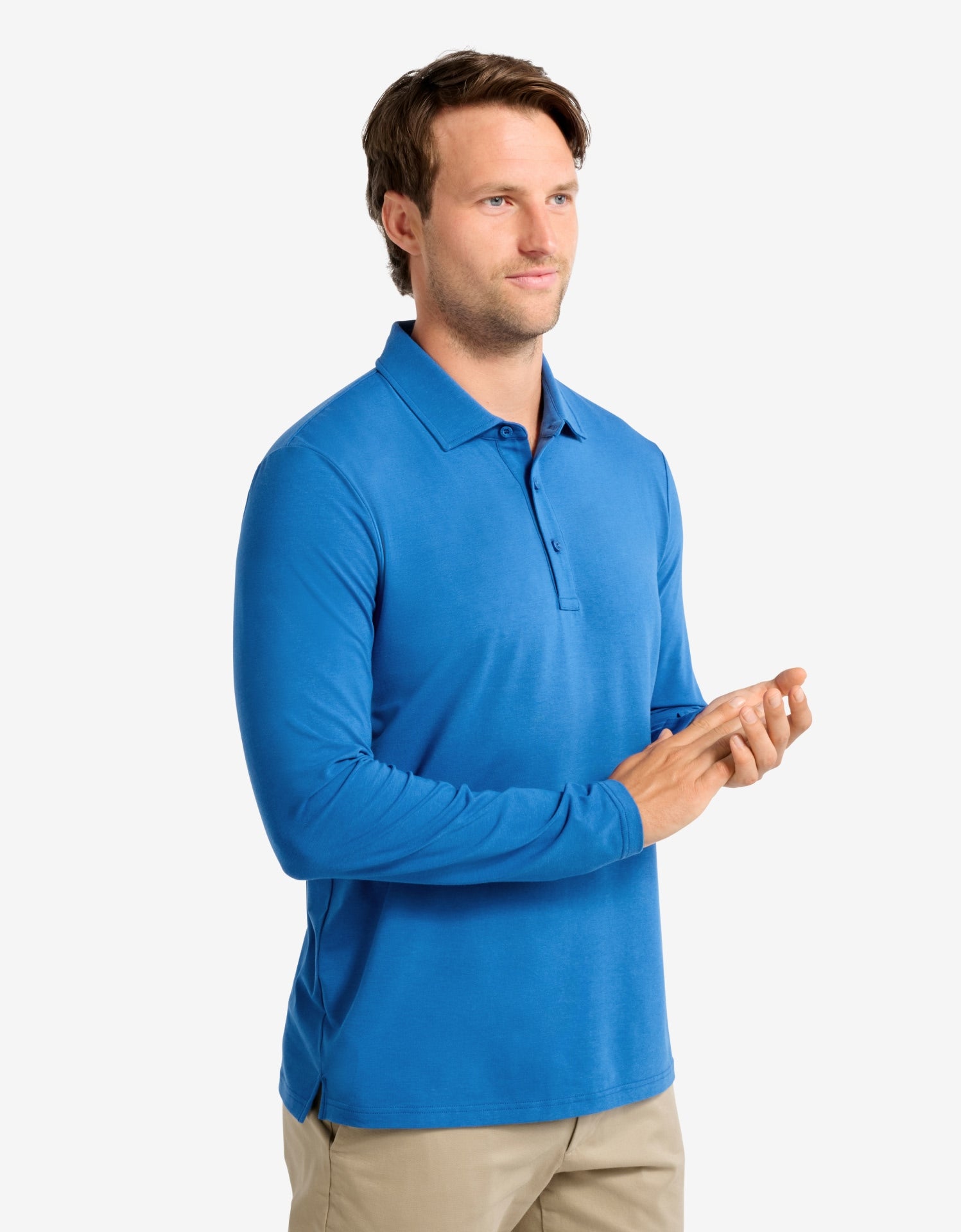 Our UPF 50+ Long Sleeve Sun Protective Polo Shirt for Men is made from a soft, natural cotton-bamboo blend that’s breathable, anti-odor, and gentle on the skin. Recommended for sensitive skin, it’s ideal for long days in the sun, including playing golf, walking, travel, and leisure.