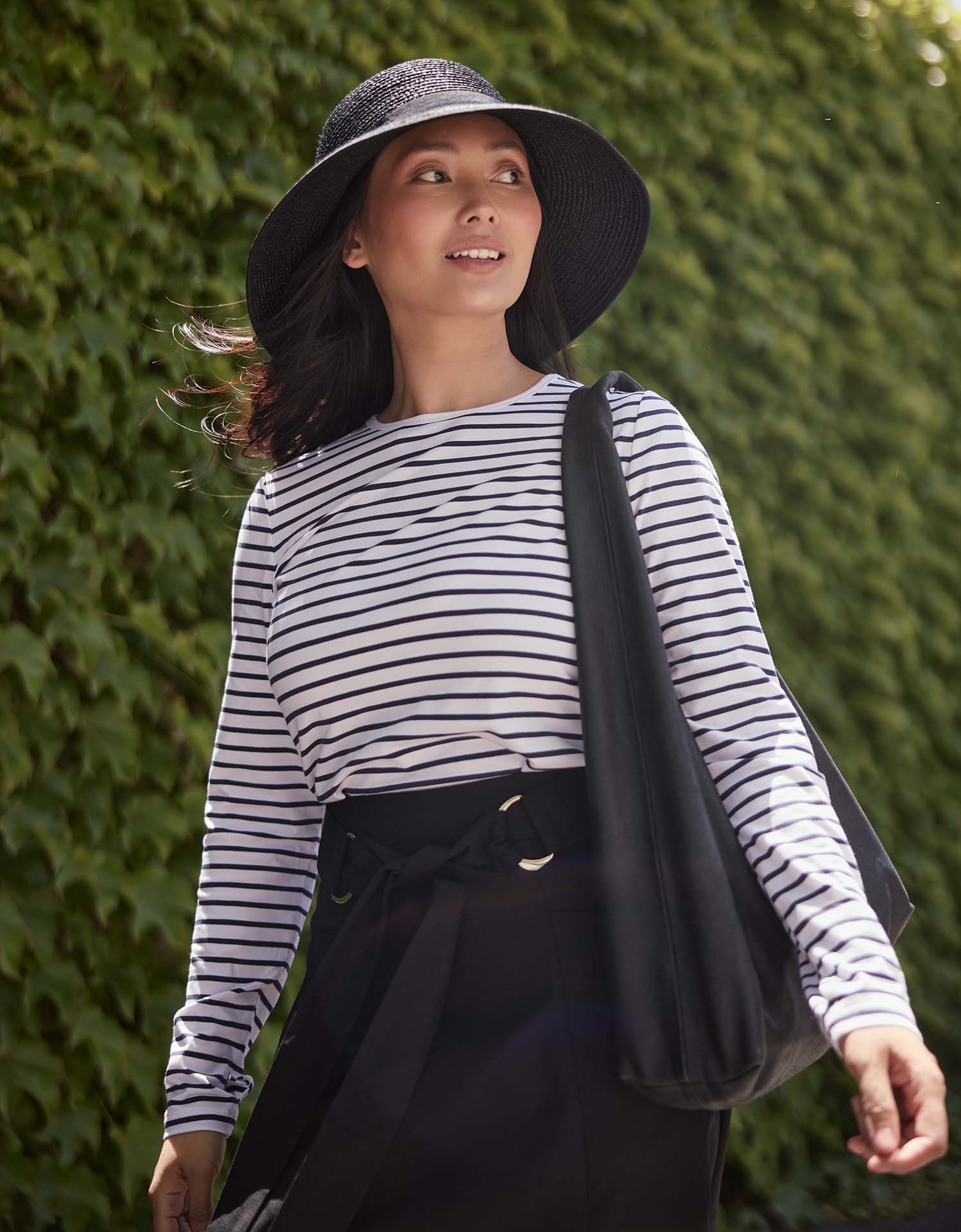 Lady wearing Solbari hat and rash top