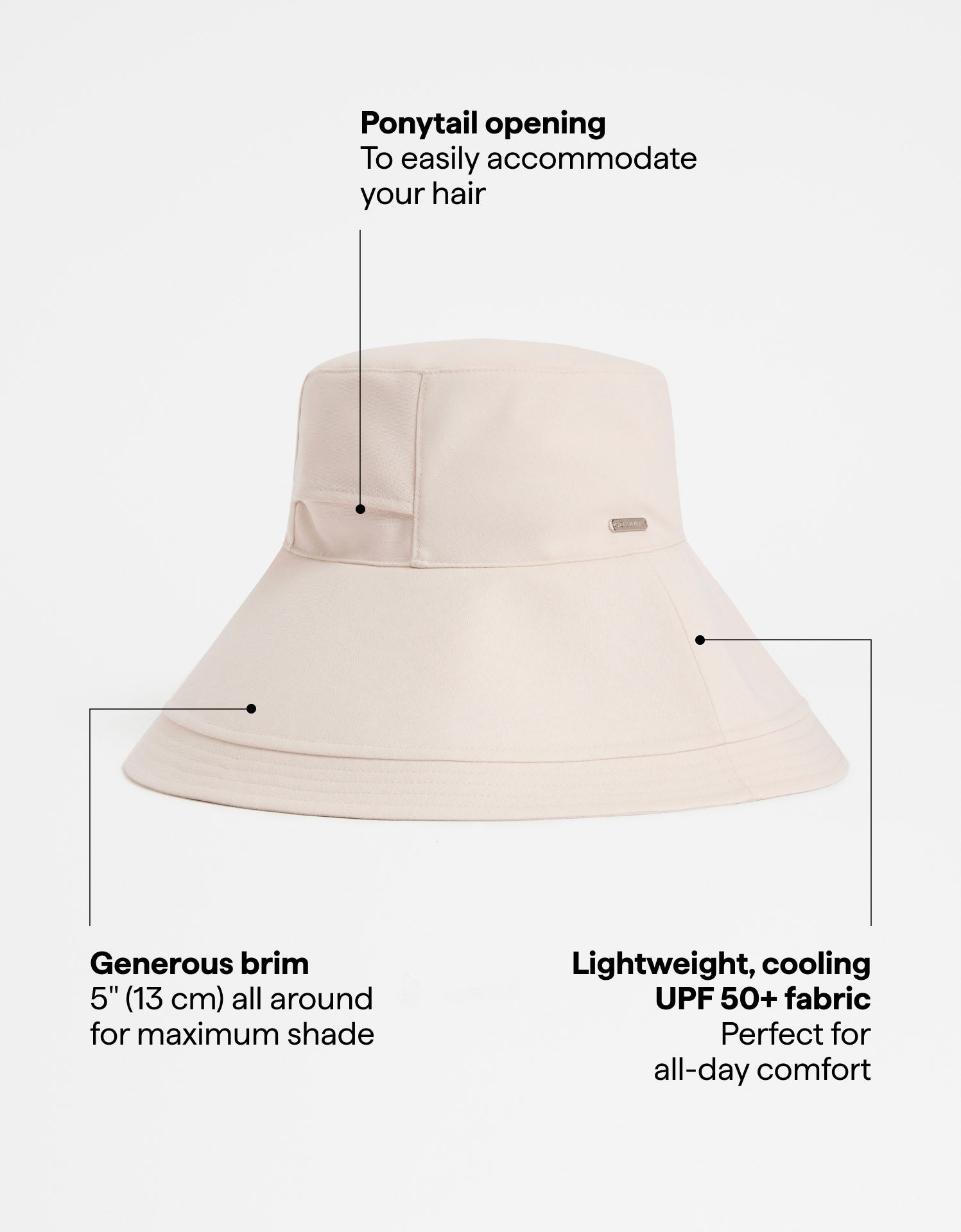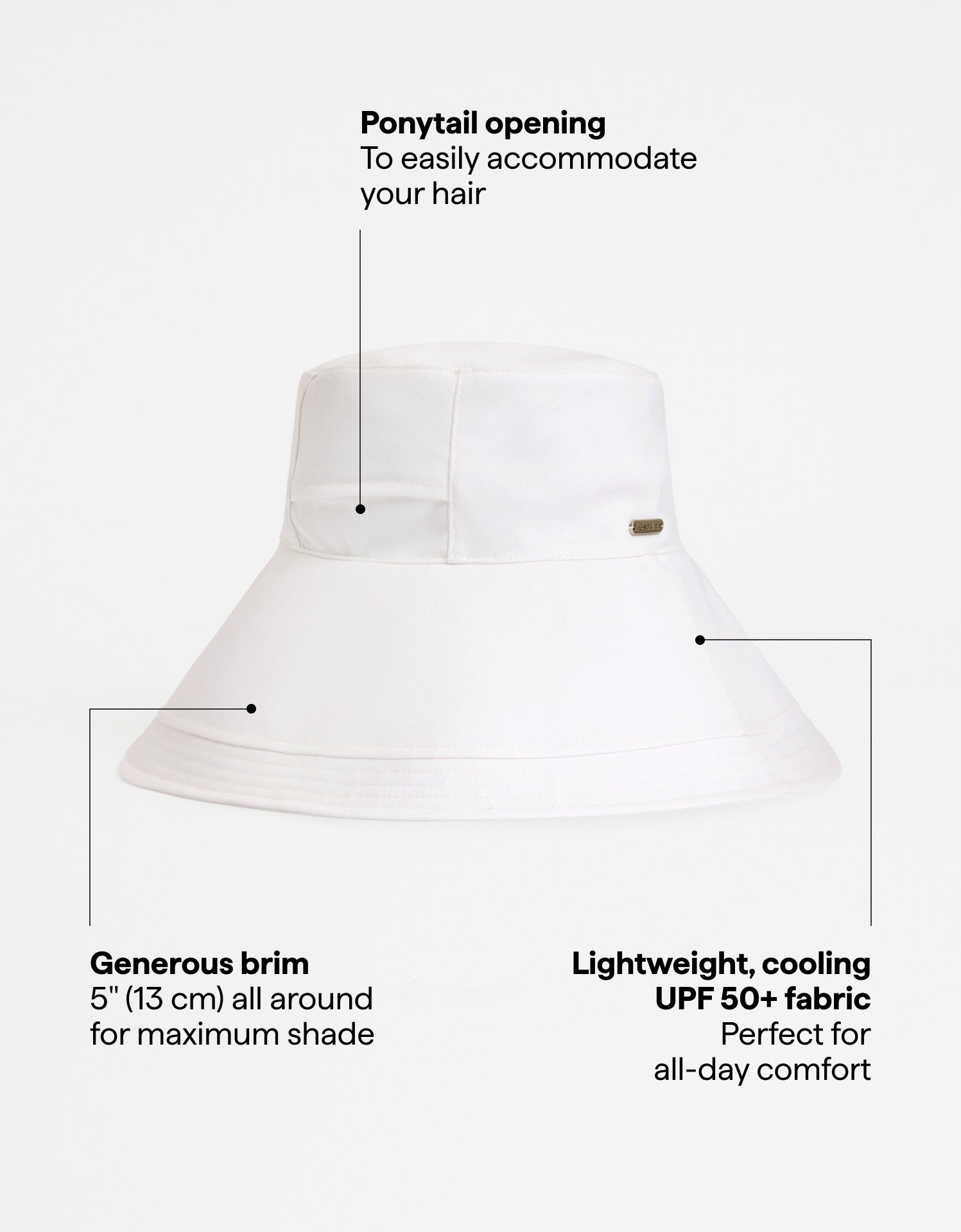 Take the shade with you in our stylish Summer Ultra Wide Brim Sun Hat. The generous 5" (13 cm) brim, crafted from certified UPF 50+ fabric, offers excellent sun protection for your face. It's feature-packed with an adjustable internal strap for customized sizing, a removable chin strap to keep the hat secure, and a discreet ponytail opening at the back.